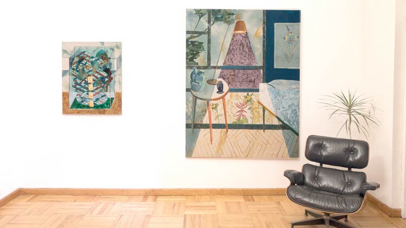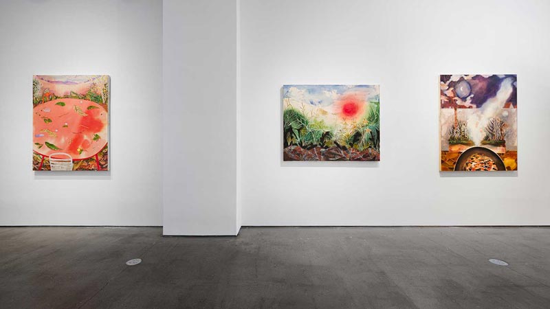 Angelina Gualdoni creates paintings that explore visibility and legibility of landscapes and interiors. She utilizes expansive washes of paint as a ground, situating representational imagery within an amorphous and shifting environments. Gualdoni’s abstract veils of paint act as metaphors for tensions between the visible world and the invisible forces outside of our control that shape experience, whether environmental, economic, or metaphysical.