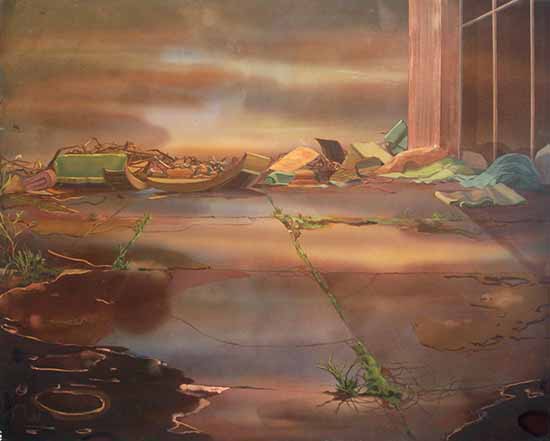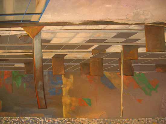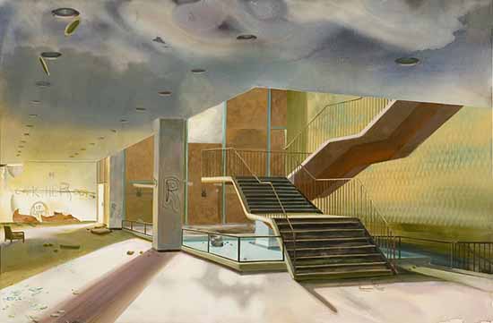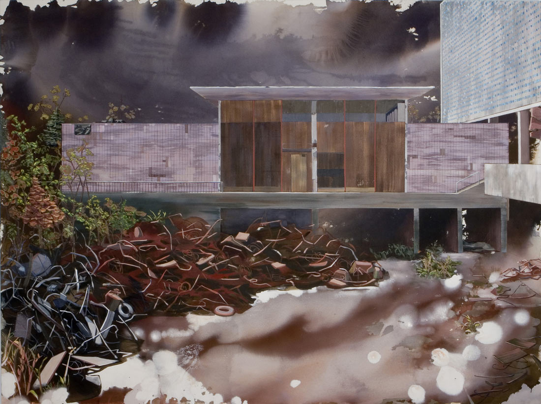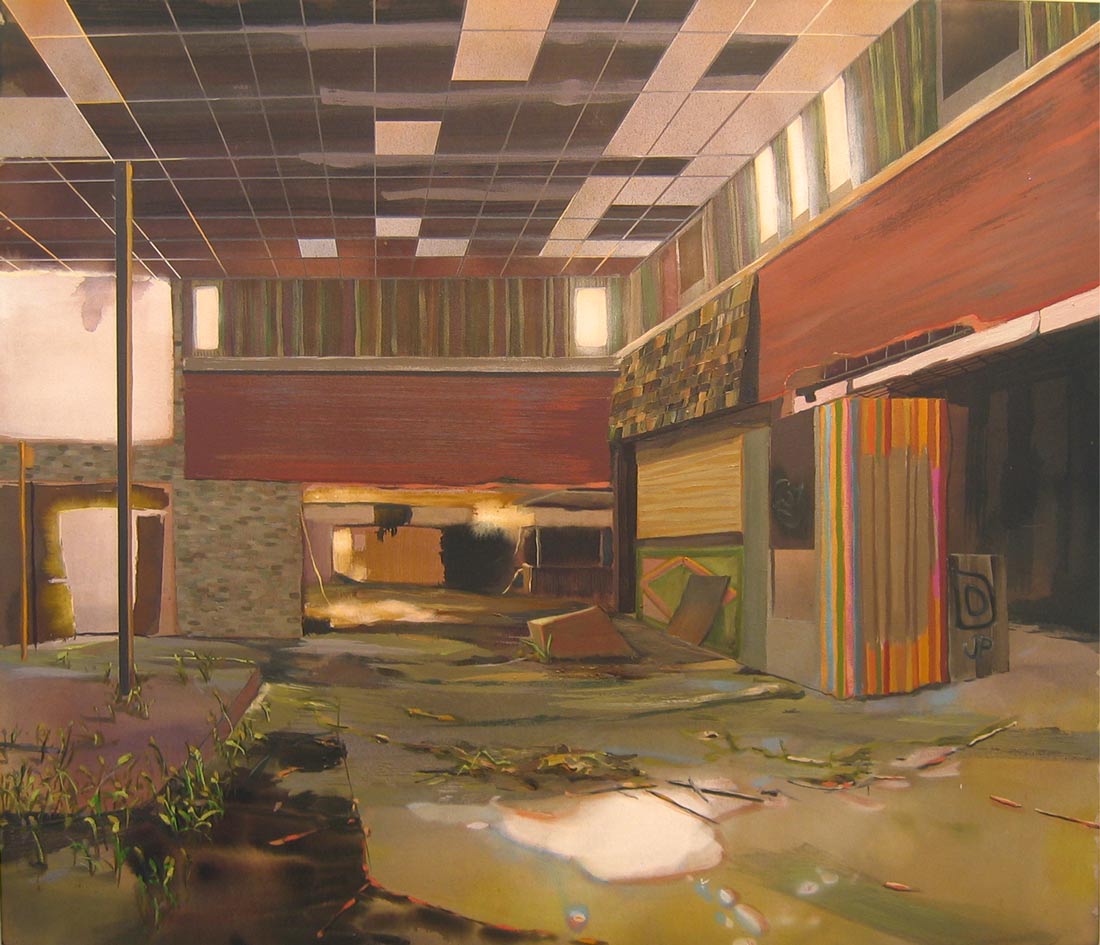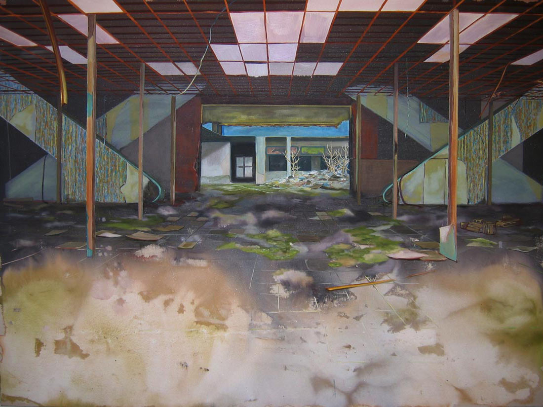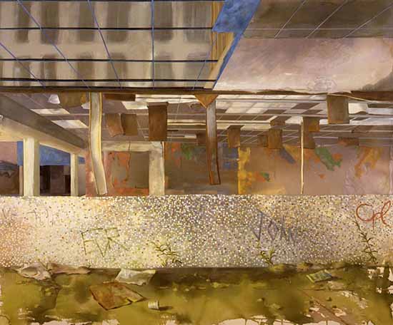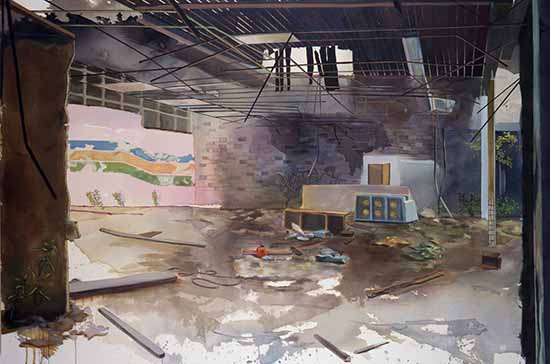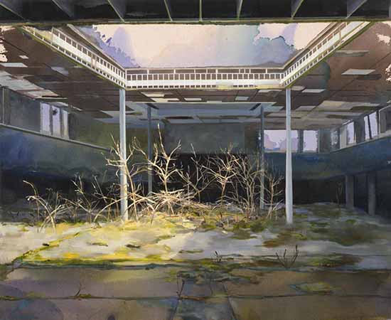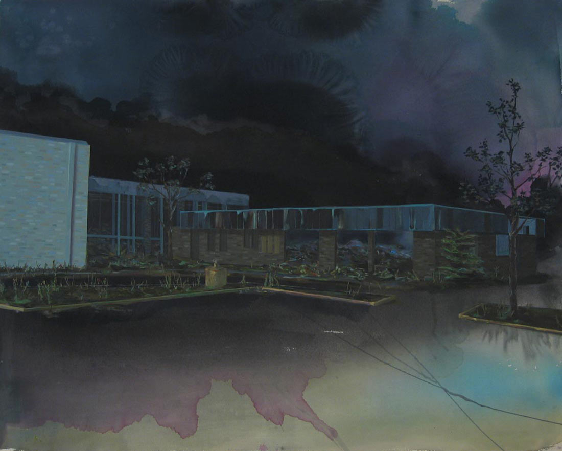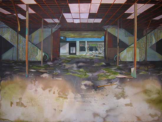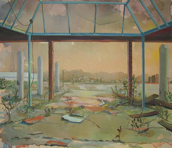 Angelina Gualdoni engages the complex legacy of modernism as it has played out in the visual arts and architecture during the second half of the twentieth century. Although her work is devoid of cynicism or polemics, Gualdoni is interested in the phenomenon of failed utopias, the disuse and collapse of the buildings that populate these canvases suggest meditations on the transience of life, or vanitas paintings from the early 21st century.